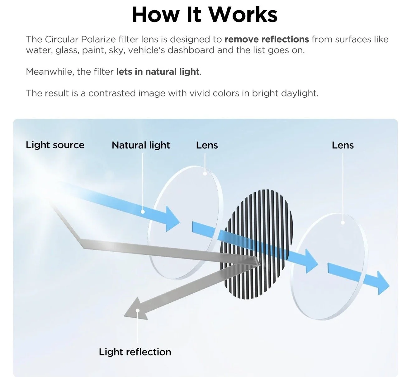 It can effectively reduce reflections, enhance contrast.